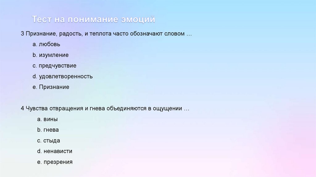3 Признание, радость, и теплота часто обозначают словом …a. любовь
