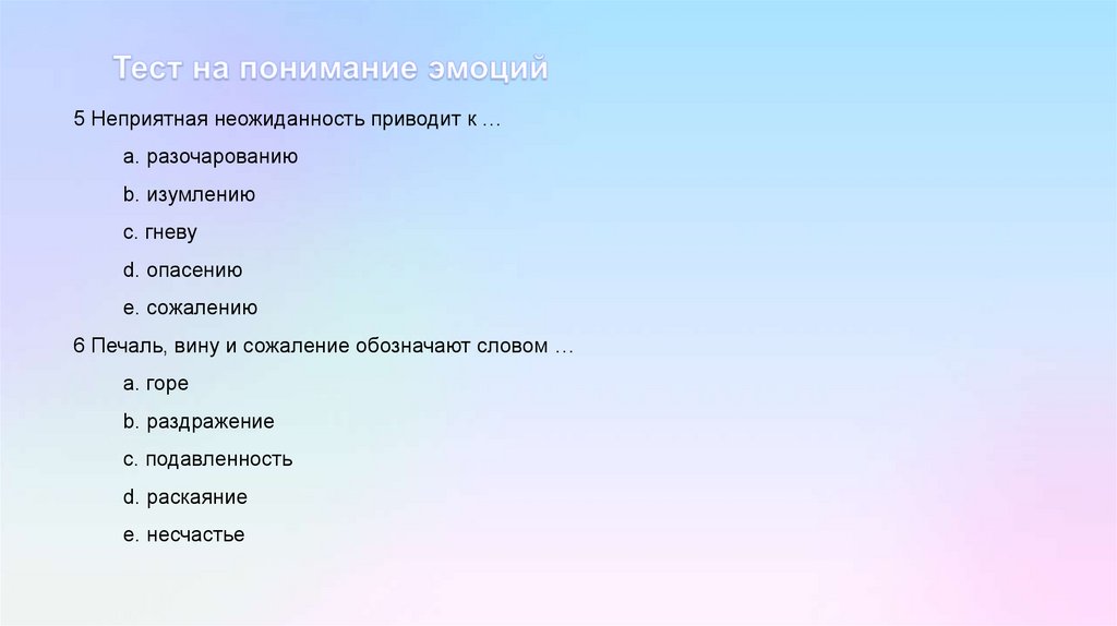 5 Неприятная неожиданность приводит к …a. разочарованию