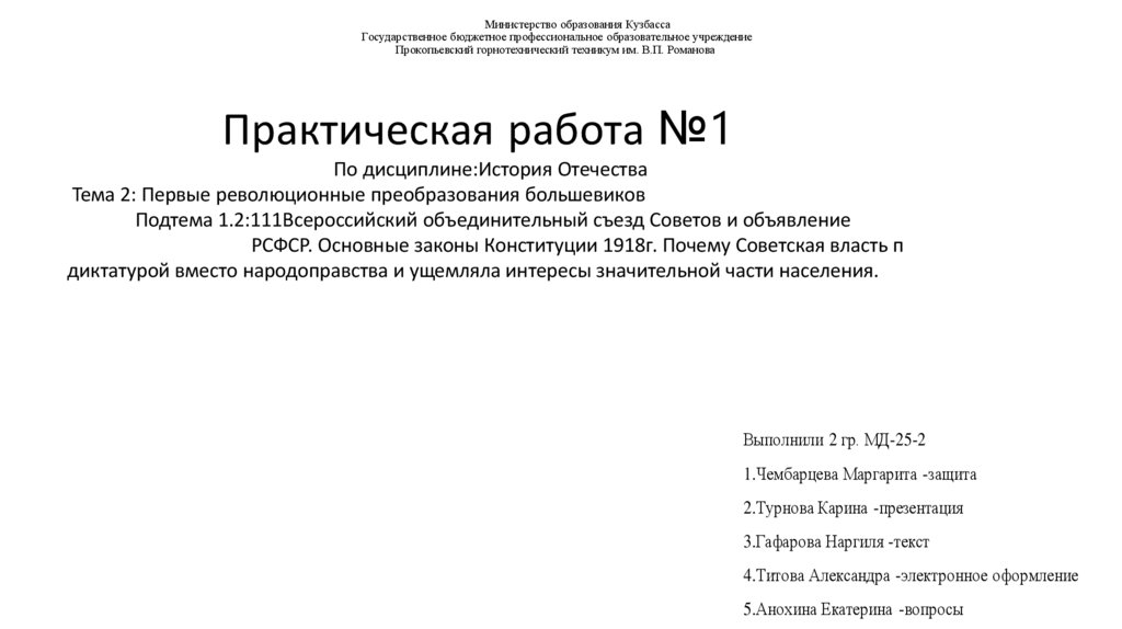 1. Министерство образования Кузбасса Государственное бюджетное профессиональное образовательное учреждение Прокопьевский