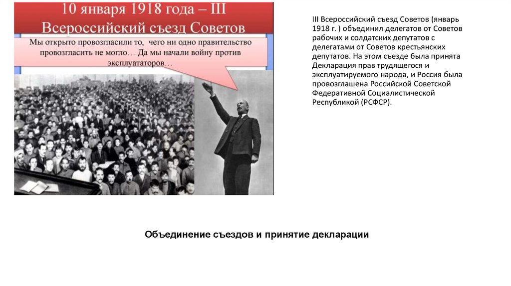 III Всероссийский съезд Советов (январь1918 г. ) объединил делегатов от Советов