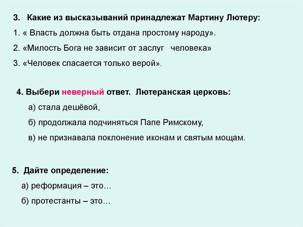 3. Какие из высказываний принадлежат Мартину Лютеру:1. « Власть должна быть отдана простому народу».