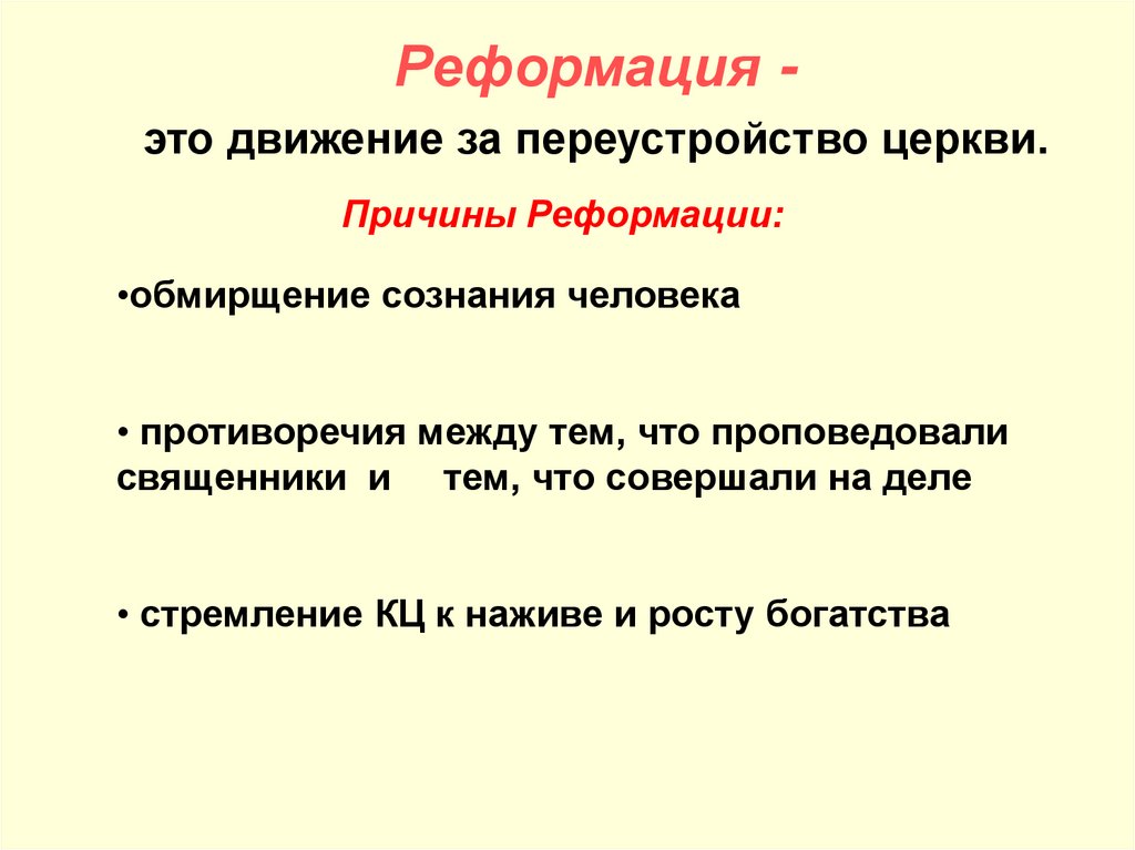 Реформация это движение за переустройство церкви.Причины Реформации: