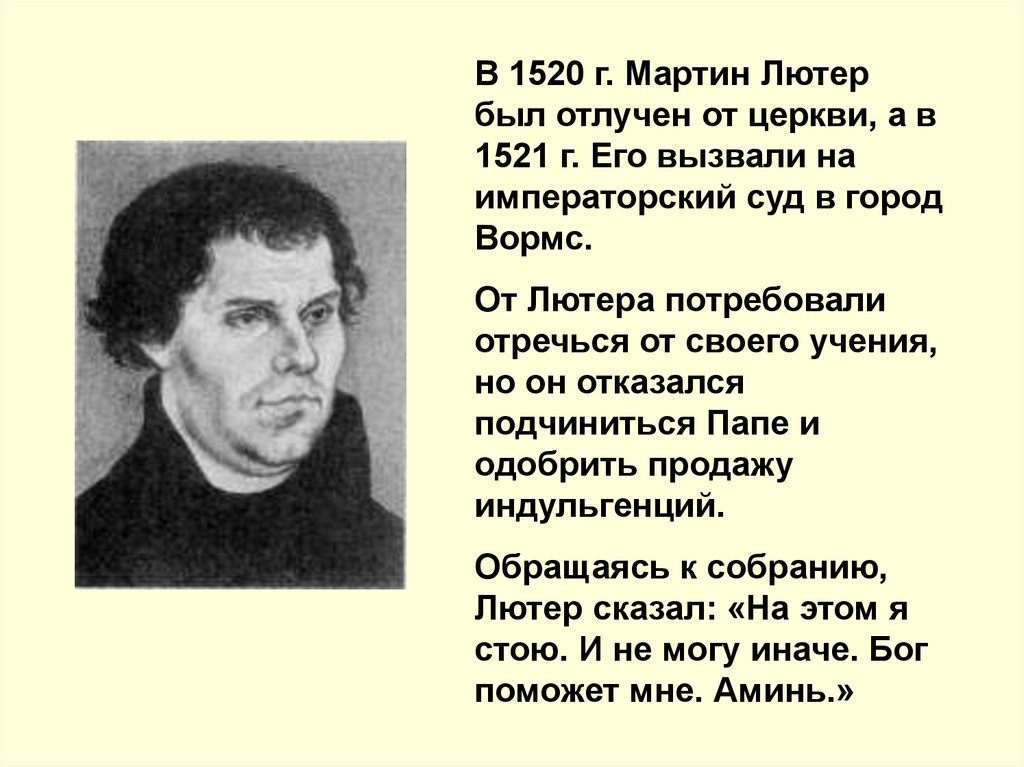 В 1520 г. Мартин Лютербыл отлучен от церкви, а в