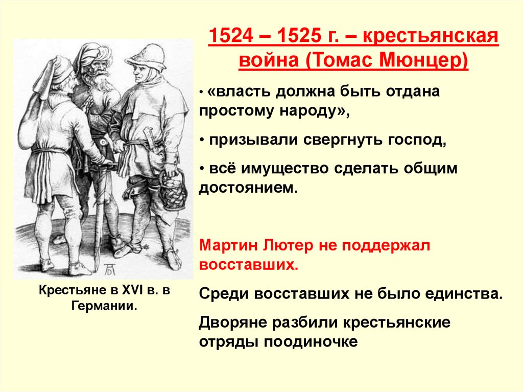 1524 – 1525 г. – крестьянскаявойна (Томас Мюнцер)
