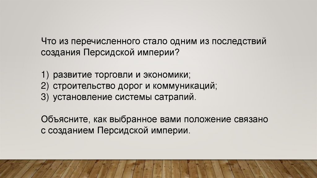 Что из перечисленного стало одним из последствийсоздания Персидской империи?