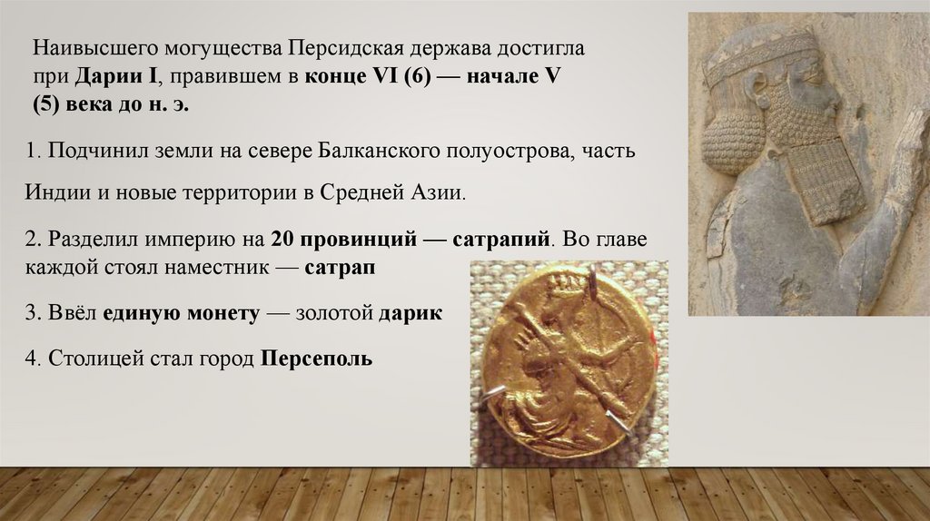 Наивысшего могущества Персидская держава достиглапри Дарии I, правившем в конце VI (6) — начале V