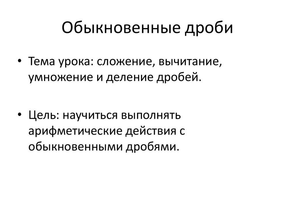 • Тема урока: сложение, вычитание,умножение и деление дробей.