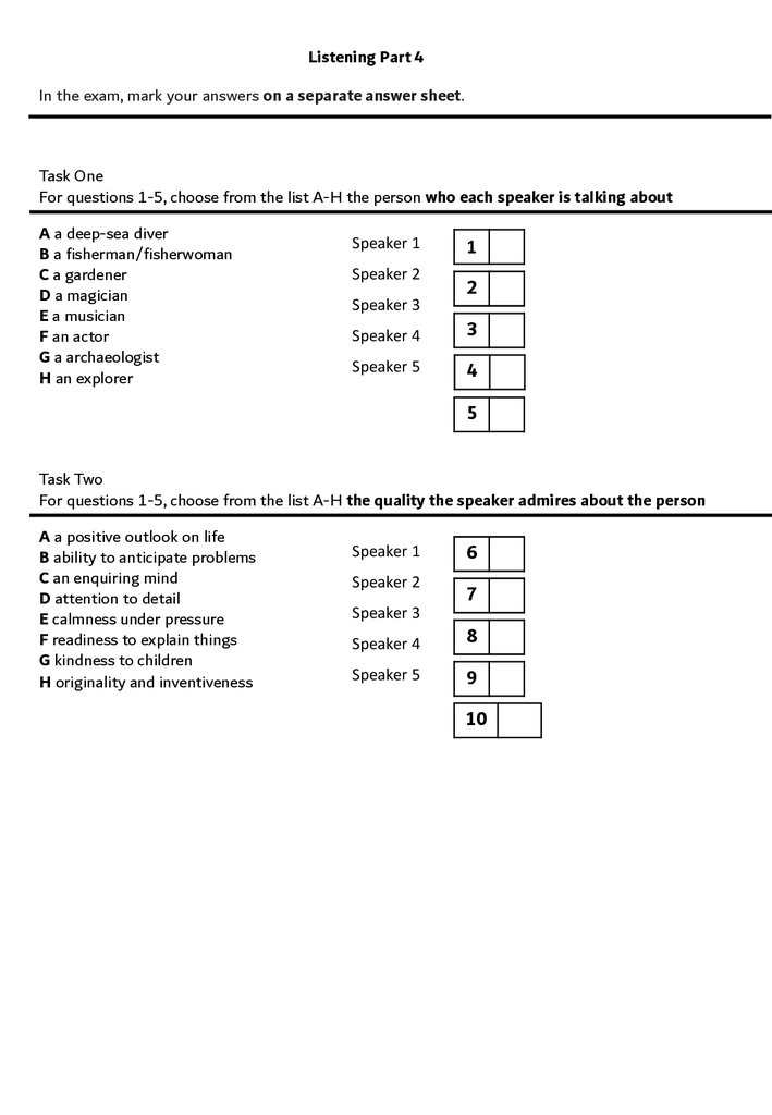 Listening Part 4In the exam, mark your answers on a separate answer sheet.