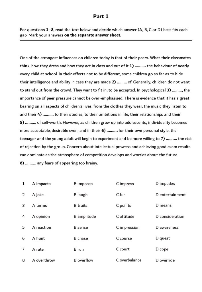 Part 1For questions 1–8, read the text below and decide which answer (A, B, C or D) best fits each