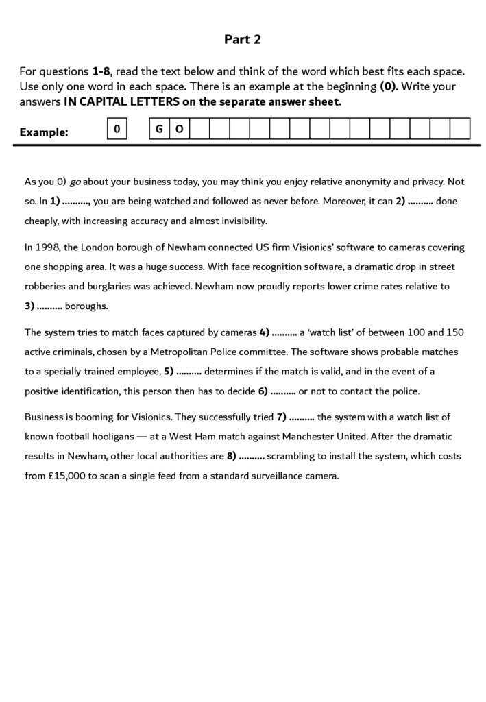Part 2For questions 1-8, read the text below and think of the word which best fits each space.