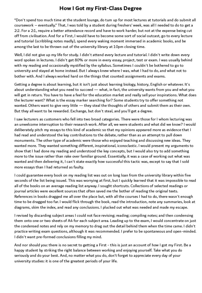 How I Got my First-Class Degree“Don't spend too much time at the student lounge, do tum up for most lectures at tutorials and do submit all