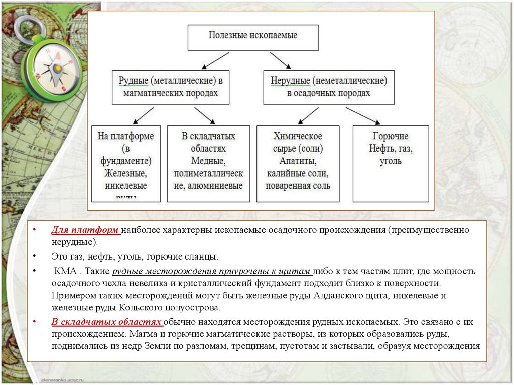 КМА . Такие рудные месторождения приурочены к щитам либо к тем частям плит, где мощность