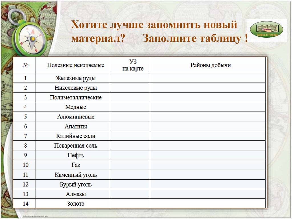 Наша страна богата полезными ископаемымиПо запасам угля, нефти, железной руды, газа, апатитов мы занимаем