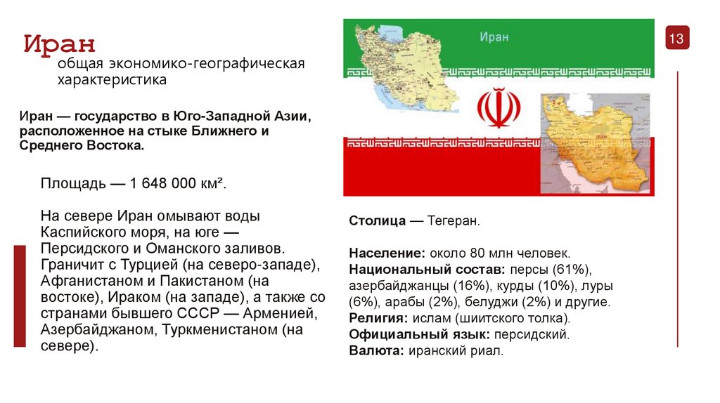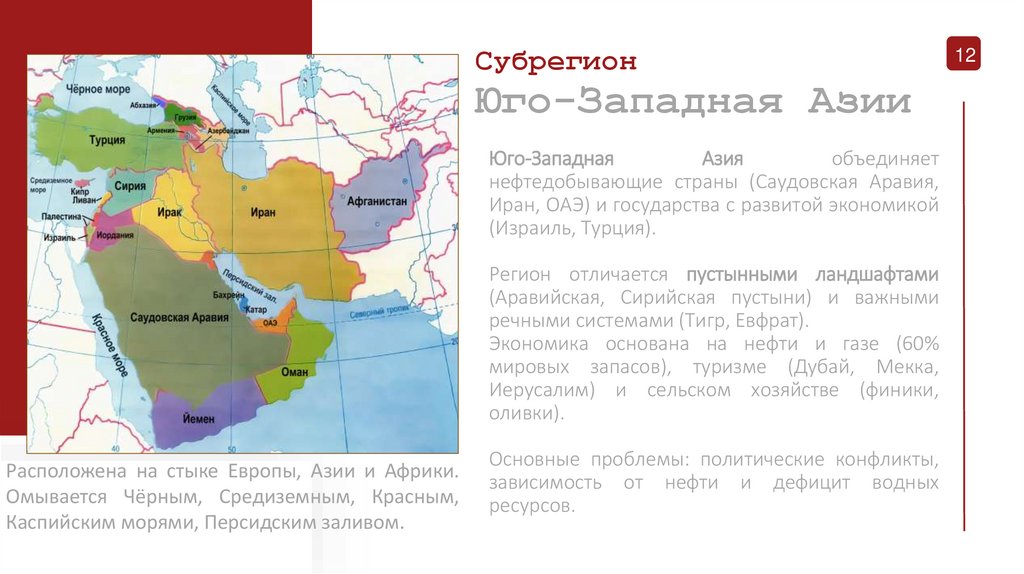 2. Зарубежная Азия: состав, общая экономико-географическая характеристика. Юго-Западная Азия. Иран: общая экономико-географическая