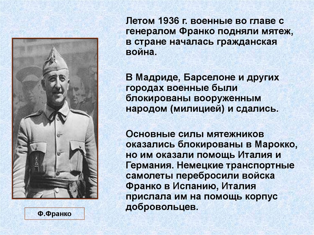 Африке. В 1936 возглавил военно-фашистский мятеж