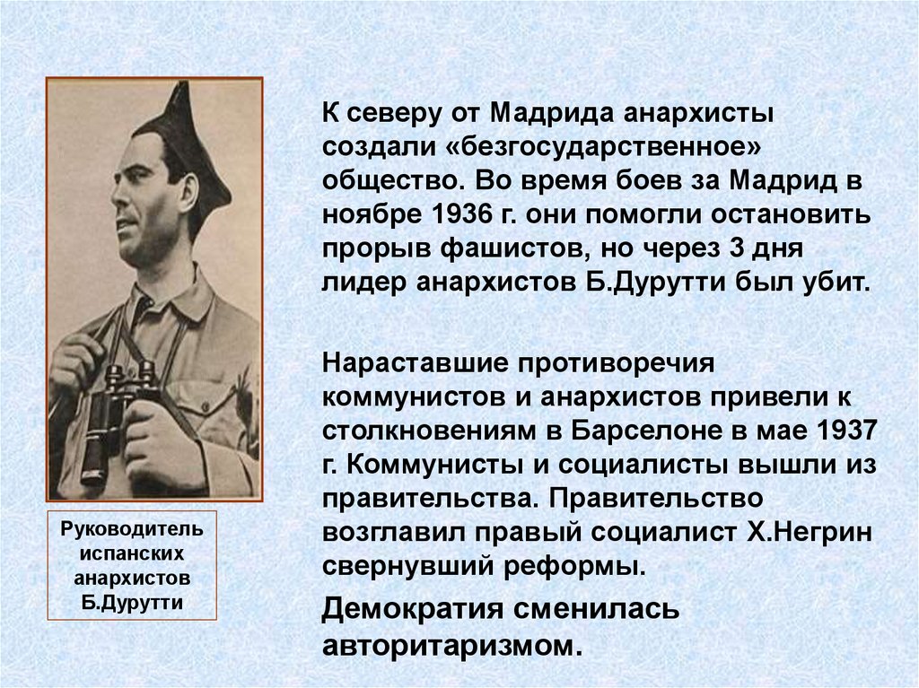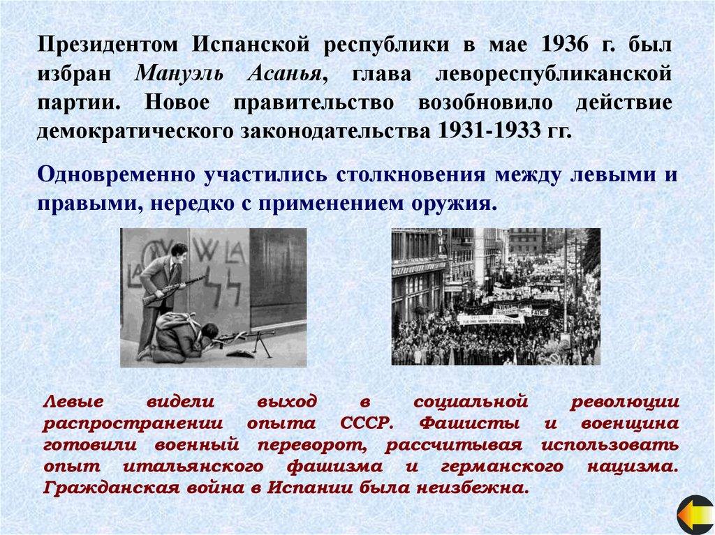 Президентом Испанской республики в мае 1936 г. былизбран Мануэль Асанья, глава левореспубликанской