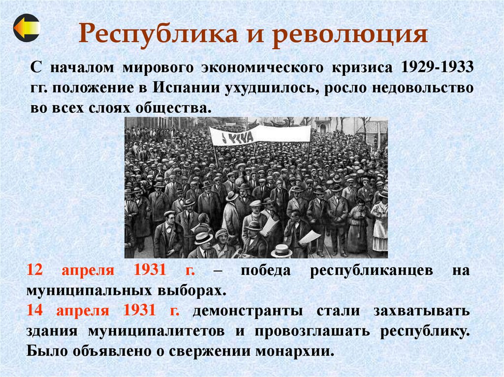 Республика и революцияС началом мирового экономического кризиса 1929-1933