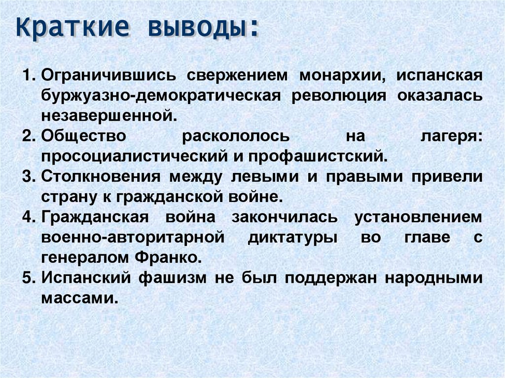 1. Ограничившись свержением монархии, испанскаябуржуазно-демократическая революция оказалась