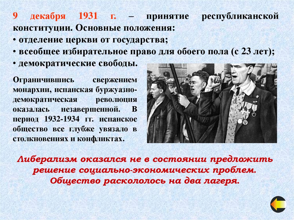 9 декабря 1931 г. – принятие республиканскойконституции. Основные положения: