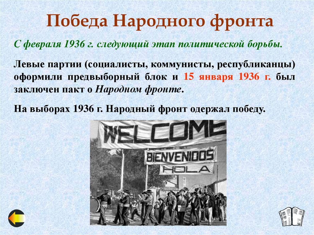 Победа Народного фронтаС февраля 1936 г. следующий этап политической борьбы.