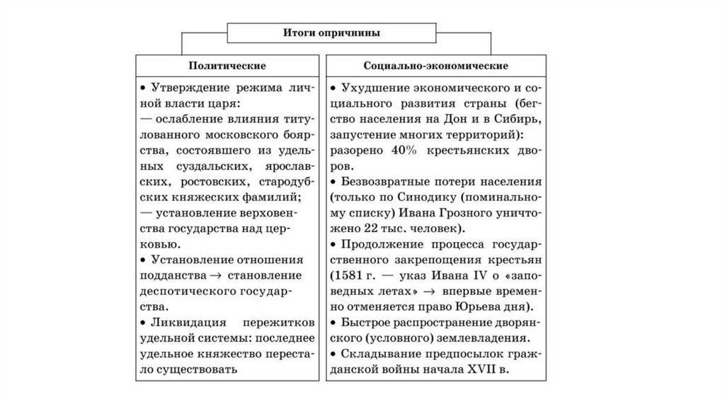 • Система внутриполитических мер Ивана IV в 1565–1572 гг. для