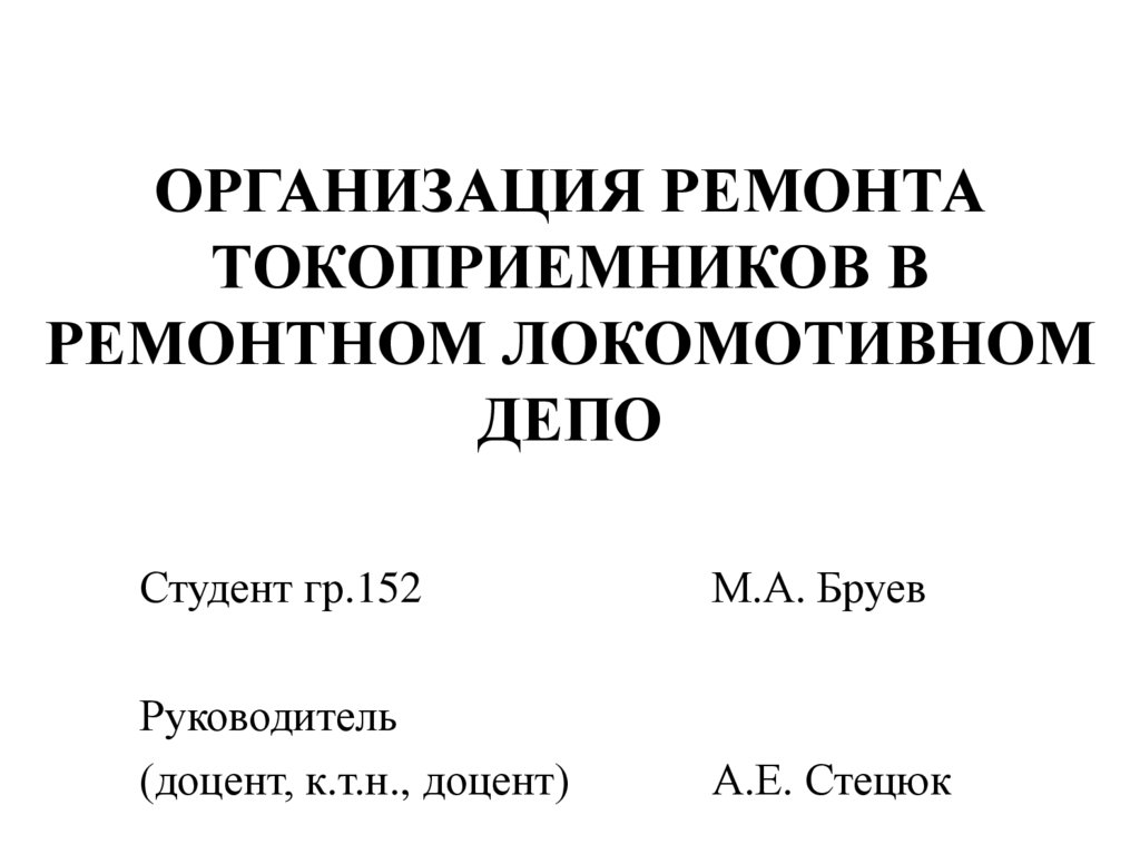 1. ОРГАНИЗАЦИЯ РЕМОНТА ТОКОПРИЕМНИКОВ В РЕМОНТНОМ ЛОКОМОТИВНОМ ДЕПО