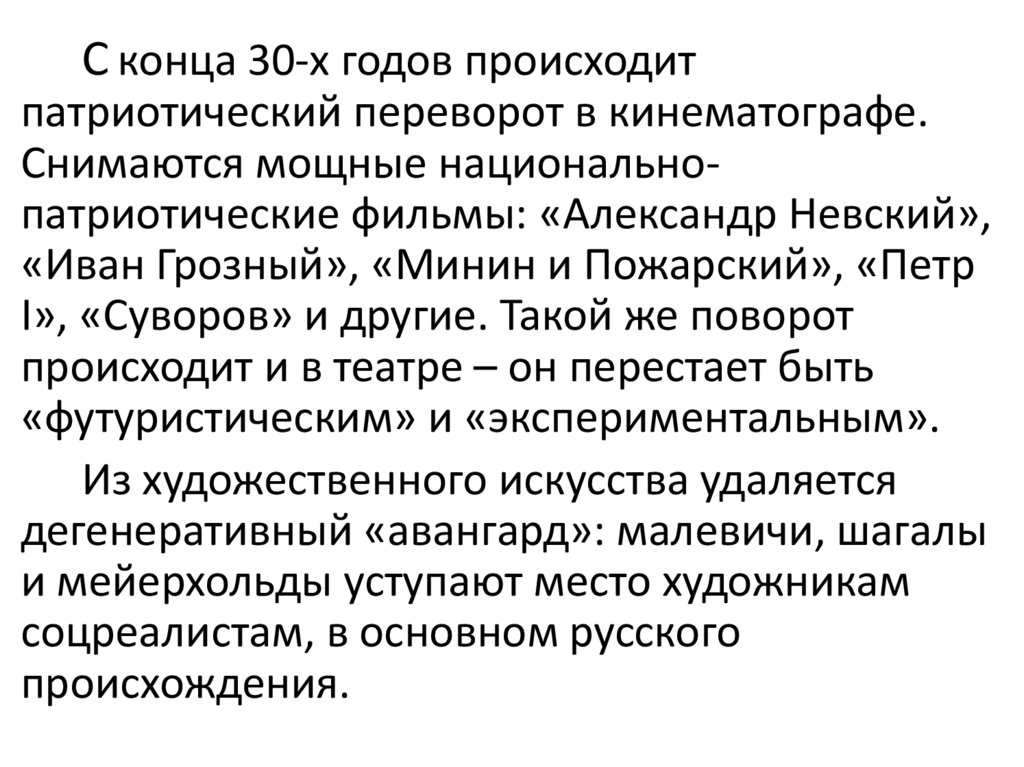 С конца 30-х годов происходитпатриотический переворот в кинематографе.