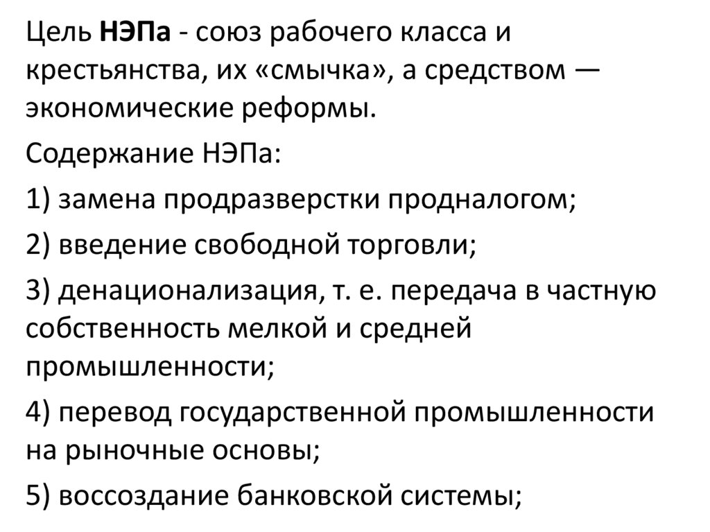Содержание НЭПа: