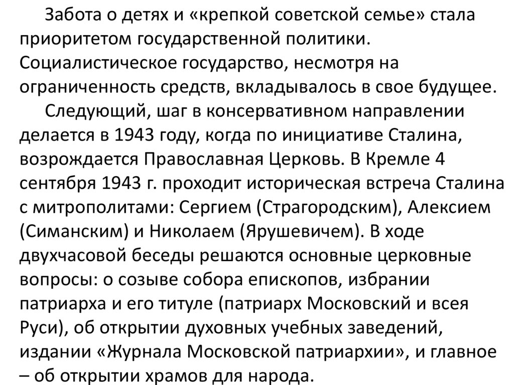 Забота о детях и «крепкой советской семье» сталаприоритетом государственной политики.