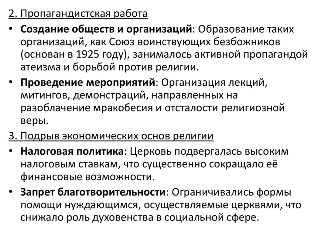 2. Пропагандистская работа• Создание обществ и организаций: Образование таких