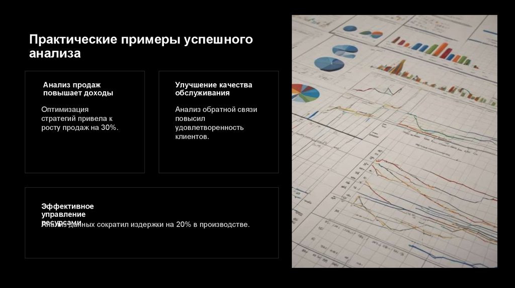 Анализ данных сократил издержки на 20% в производстве.