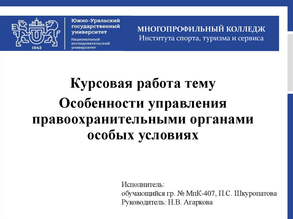 Цель курсовой работы: Определить особенности управленияправоохранительными органами в особых условиях и выработке
