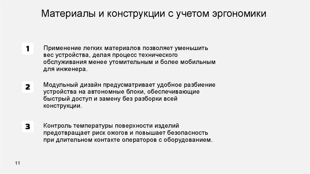Материалы и конструкции с учетом эргономикиПрименение легких материалов позволяет уменьшить