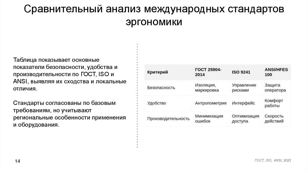 Сравнительный анализ международных стандартовэргономики