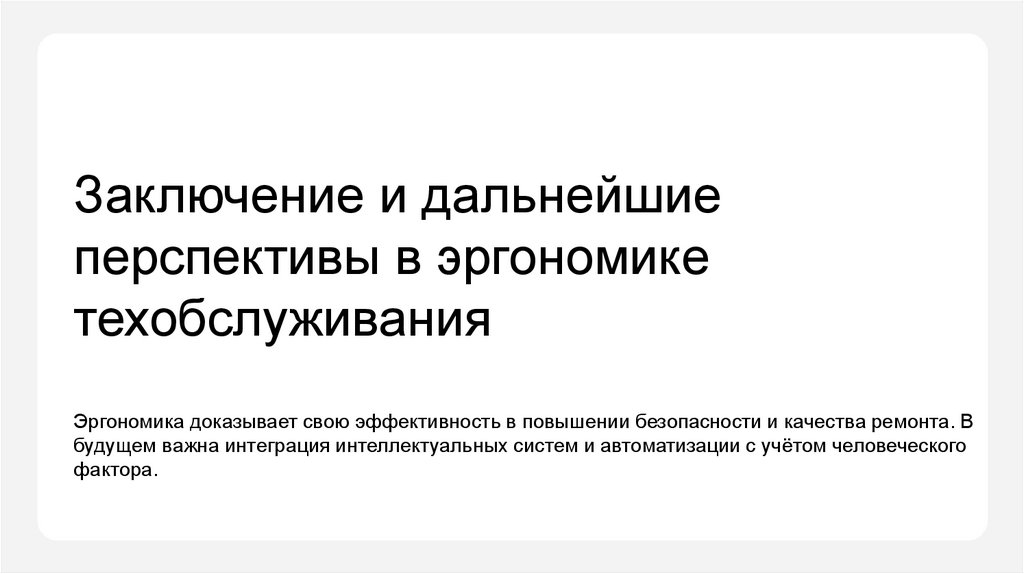 Заключение и дальнейшиеперспективы в эргономике