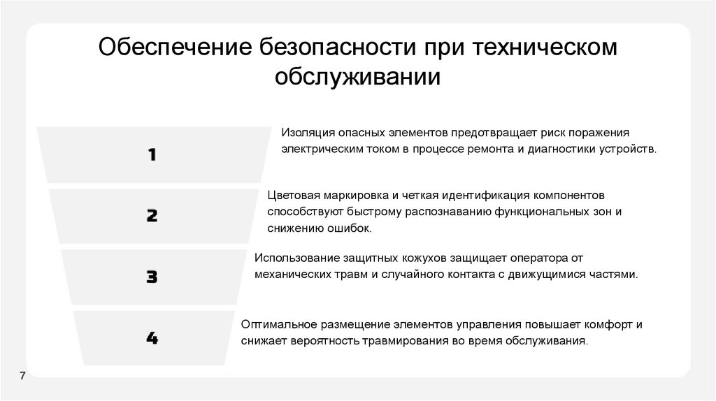 снижает вероятность травмирования во время обслуживания.