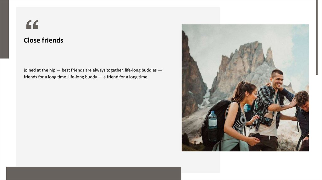 Close friendsjoined at the hip — best friends are always together. life-long buddies —