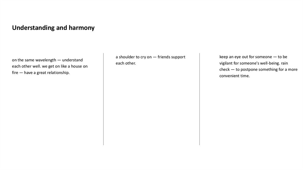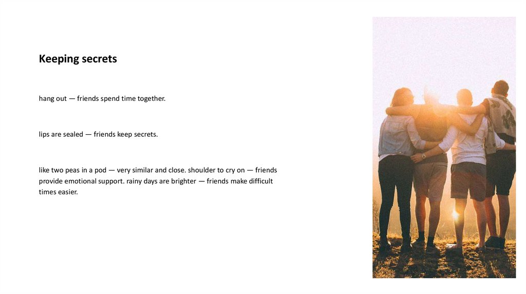 like two peas in a pod — very similar and close. shoulder to cry on — friends