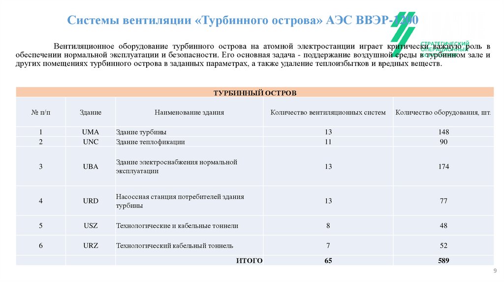 Состав вентиляционного оборудования «Турбинного острова»АЭС ВВЭР-1200