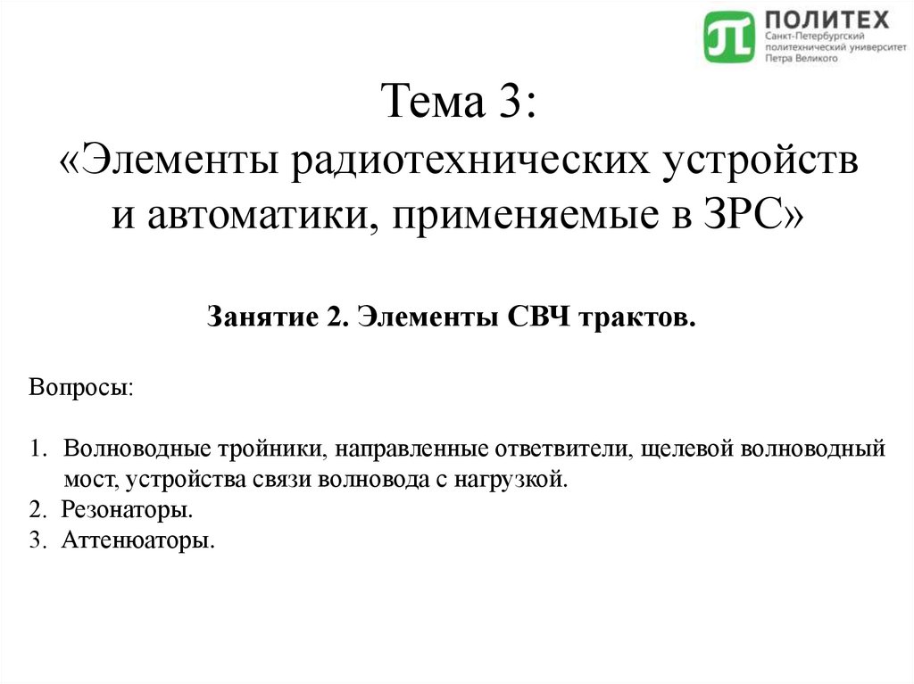 1. Тема 3: «Элементы радиотехнических устройств и автоматики, применяемые в ЗРС»