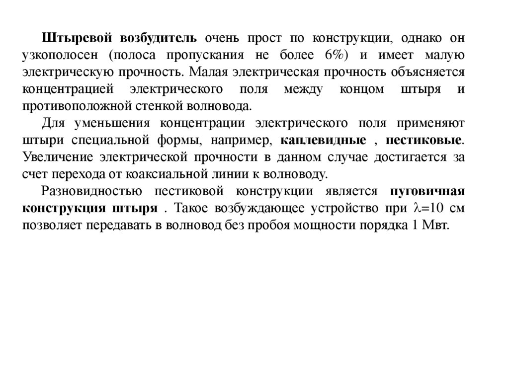 Штыревой возбудитель очень прост по конструкции, однако онузкополосен (полоса пропускания не более 6%) и имеет малую