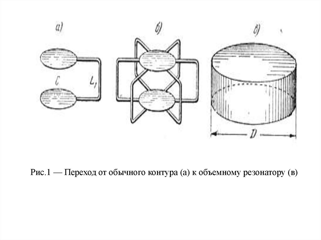 Рис.1 — Переход от обычного контура (а) к объемному резонатору (в)16.
