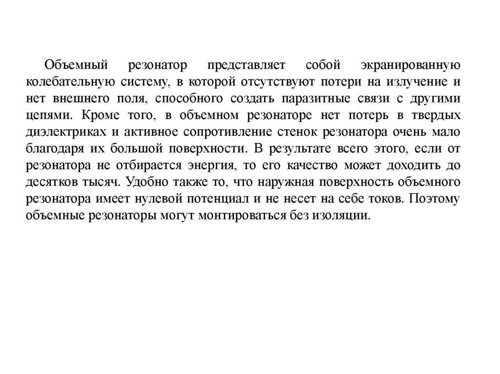 Объемный резонатор представляет собой экранированнуюколебательную систему, в которой отсутствуют потери на излучение и
