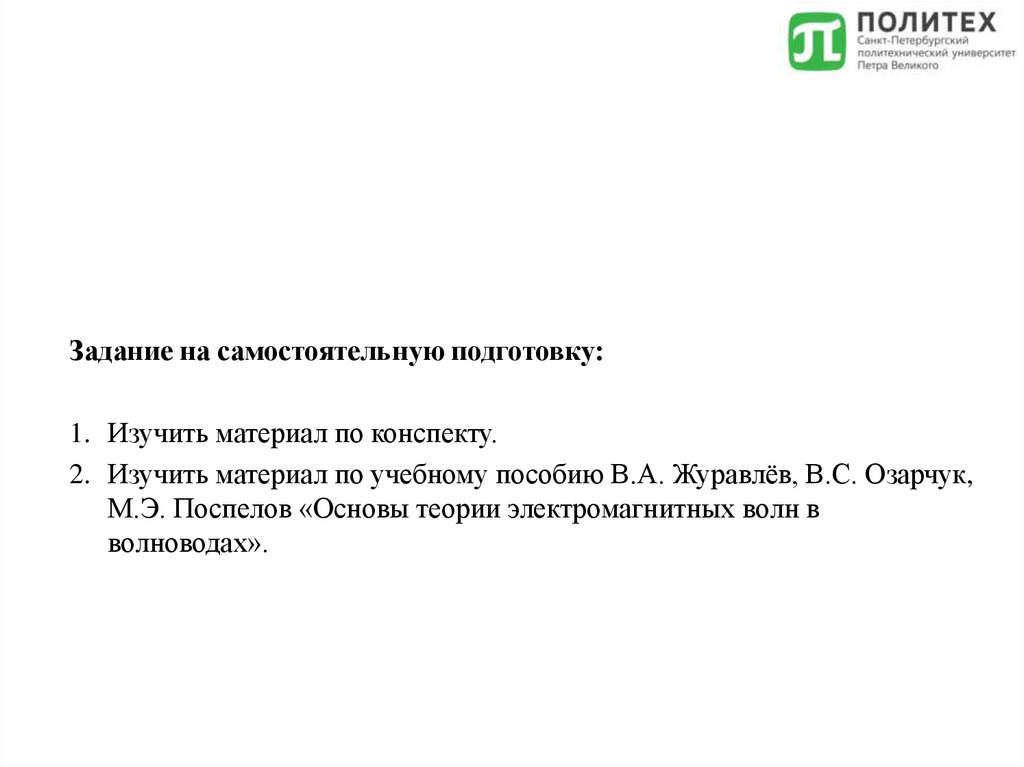 электромагнитных волн в волноводах», учебное пособие, СПб 2023 г. – 67 с.