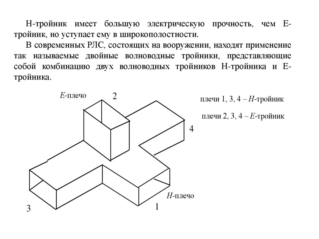 Н-тройник имеет большую электрическую прочность, чем Етройник, но уступает ему в широкополостности.В современных РЛС, состоящих на вооружении, находят применение