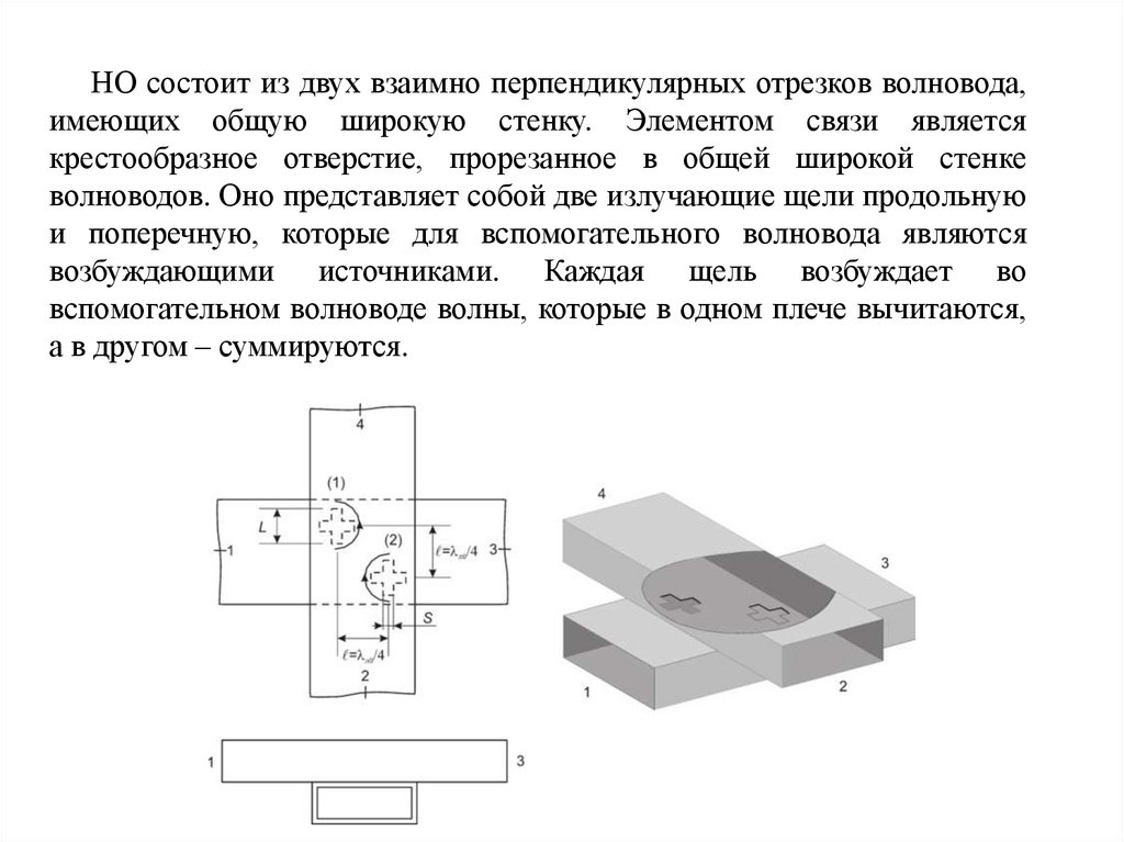 НО состоит из двух взаимно перпендикулярных отрезков волновода,имеющих общую широкую стенку. Элементом связи является
