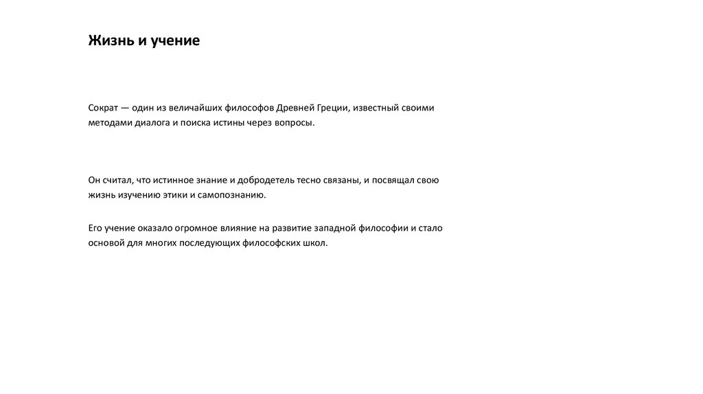 Жизнь и учениеСократ — один из величайших философов Древней Греции, известный своими