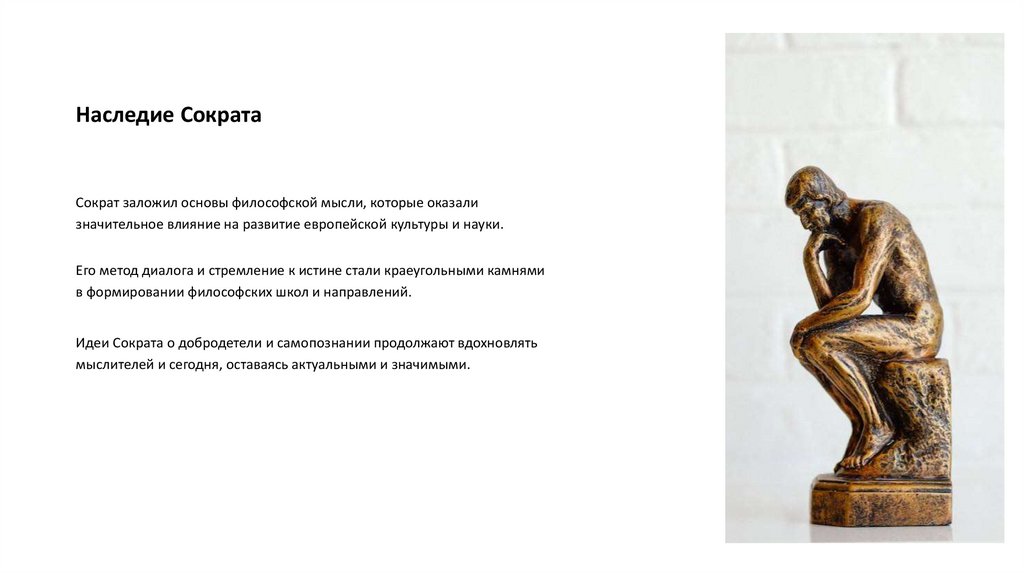 Наследие СократаСократ заложил основы философской мысли, которые оказали