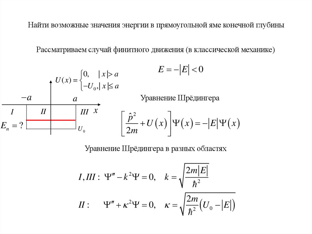 Найти возможные значения энергии в прямоугольной яме конечной глубиныРассматриваем случай финитного движения (в классической механике)