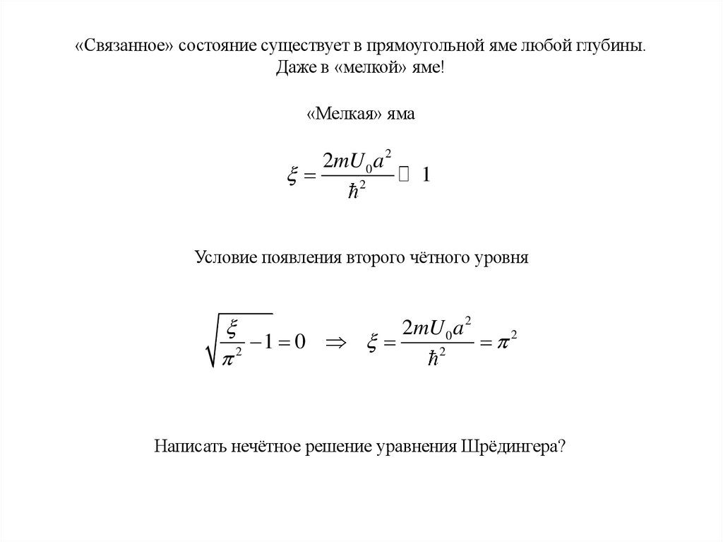 По мере увеличения глубины ямы чётность уровней чередуется. Основное состояние